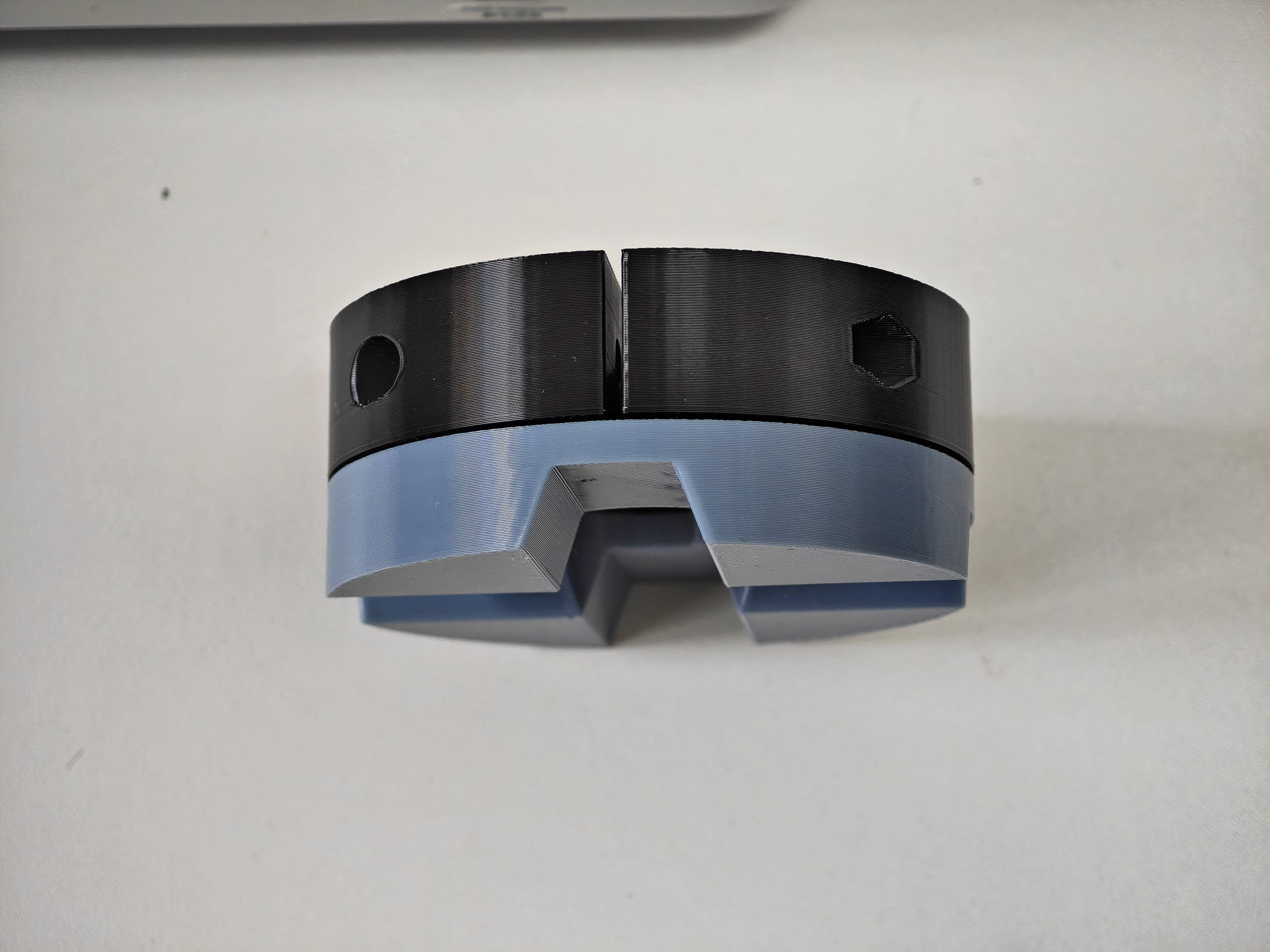 The top clamp and knob are printed next. These parts will combine with a wavy partner which will mesh with the lower wavy at the top of the lower clamp.