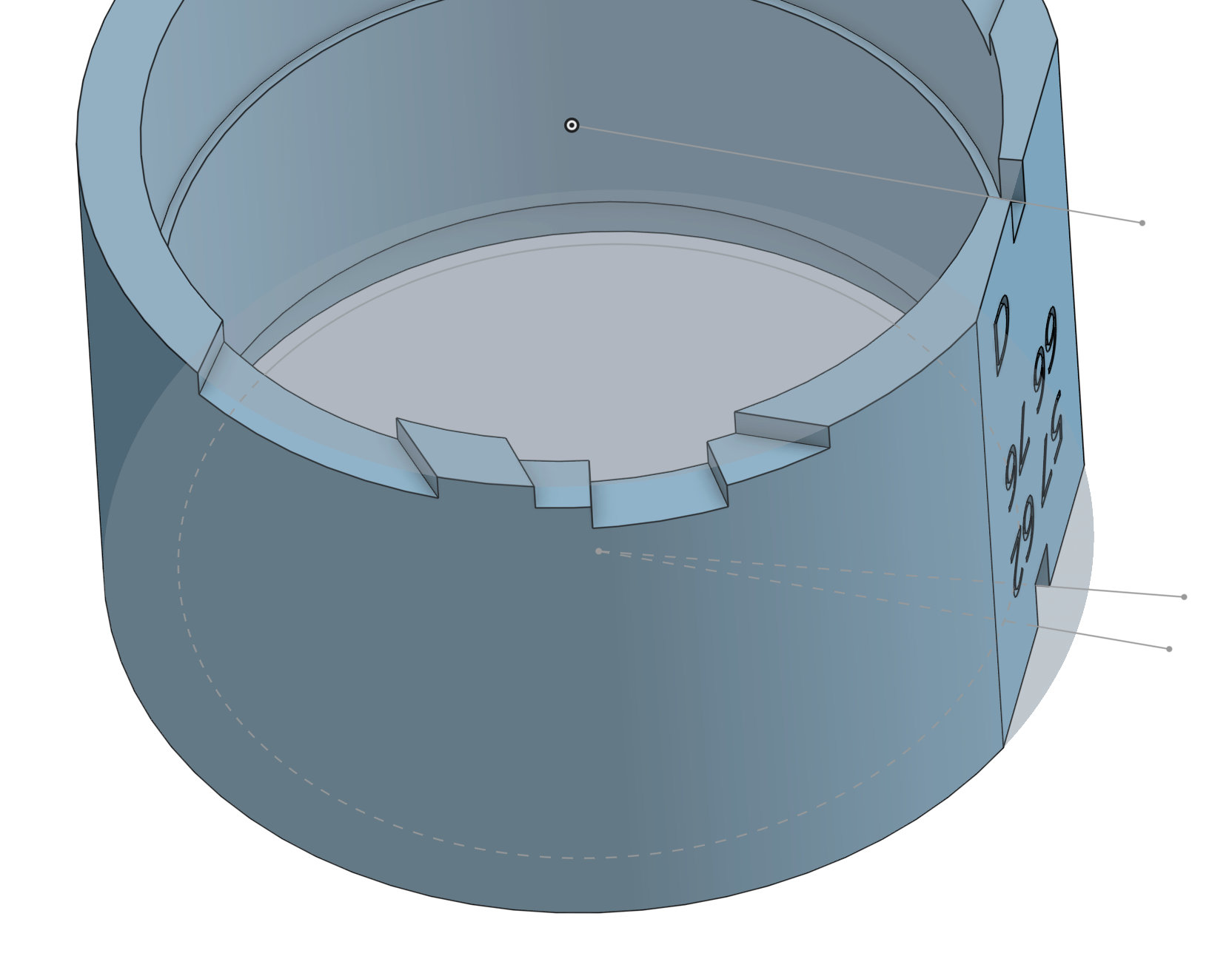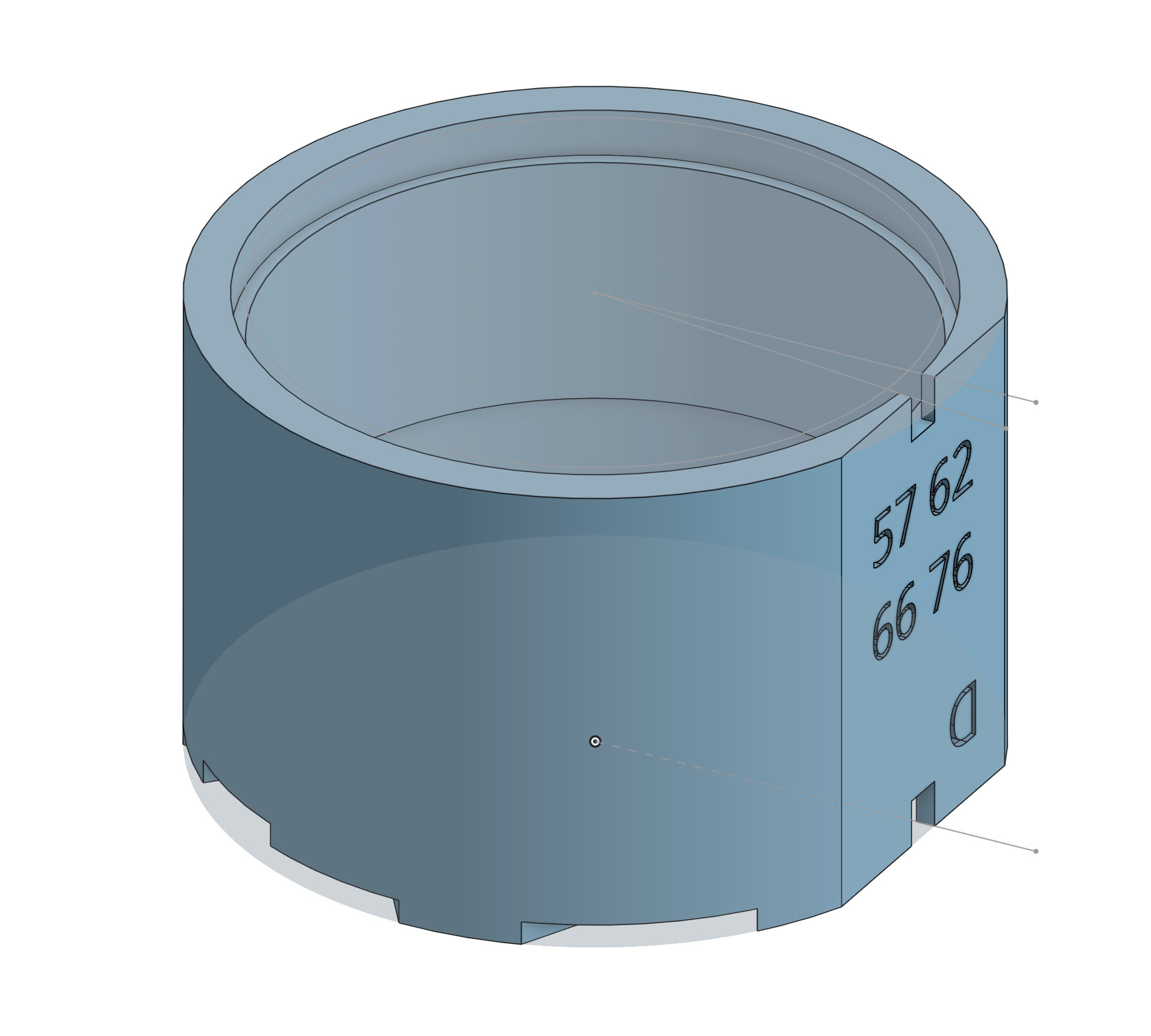 Some time ago, I reported on my success in having secured a set of 14 vintage Seiko movement holders spanning the smallest to largest Seiko calibres produced through the 1960s and into the early 1970s. I have enjoyed using these but I wanted to try my hand at producing my own equivalent set, one which perhaps might improve in some ways on Seiko’s designs. Having the origin tools to hand certainly helped me to sketch out the initial forays in producing my own designs. The process starts by drawing a cylinder of the external diameter and height required and from that point, extrusion is your friend, allowing you to hollow out the cylinder, defining wall thickness, create ridges for the movement to rest in, cut-outs for the stem and to provide access to dial screws. Here’s the finished rendering of the holder designed for the 57-, 62, 66- and 76-series movements, all of which having the same 27.6mm casing diameter.