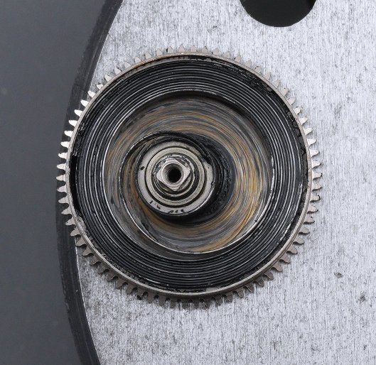 The original mainspring looked to be in very good condition, albeit slathered in goodly amounts of molybdenum grease.