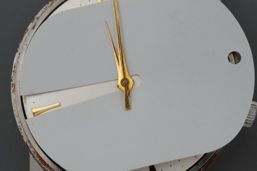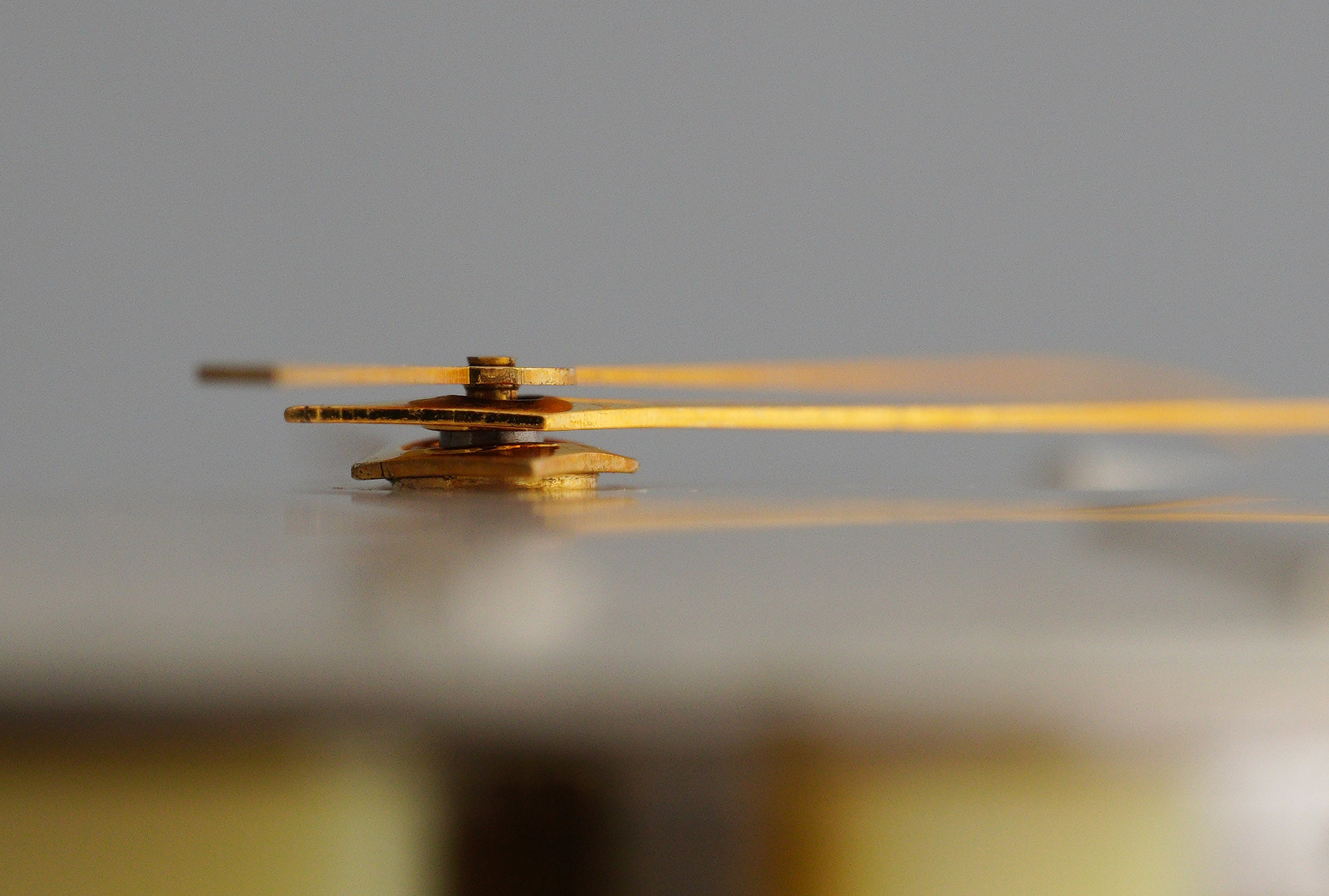 To avoid inflicting further damage and to aid in providing a little clearance for my hand levers, I slid in a Bergeon dial protector with the slot orientated parallel with the line connecting the two apexes of the hour hand.